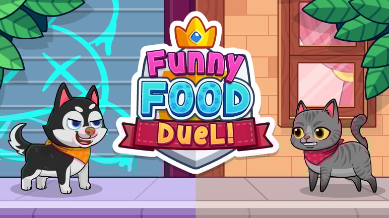 Funny Food Duel is an entertaining game in which the two pets will face each other in a fight to catch food. Choose the pets and pick up the food coming from the cloche plate faster than the rival, but avoid frozen or rotted food. Unlock more characters every time you win the duel.